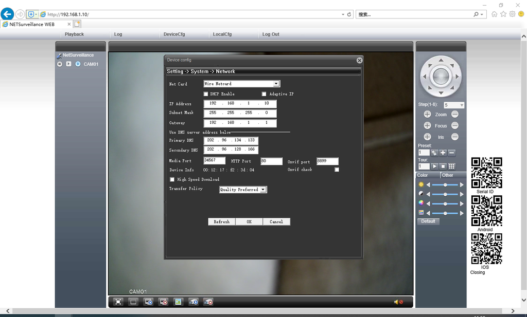 1, log in the IP camera by the browser with its local IP address: http://192.168.1.10,the camera user name is "admin", the camera password is null(empty).