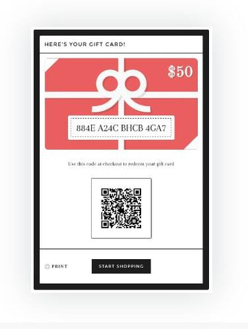 Gift cards are delivered by email and contain instructions to redeem them at checkout.